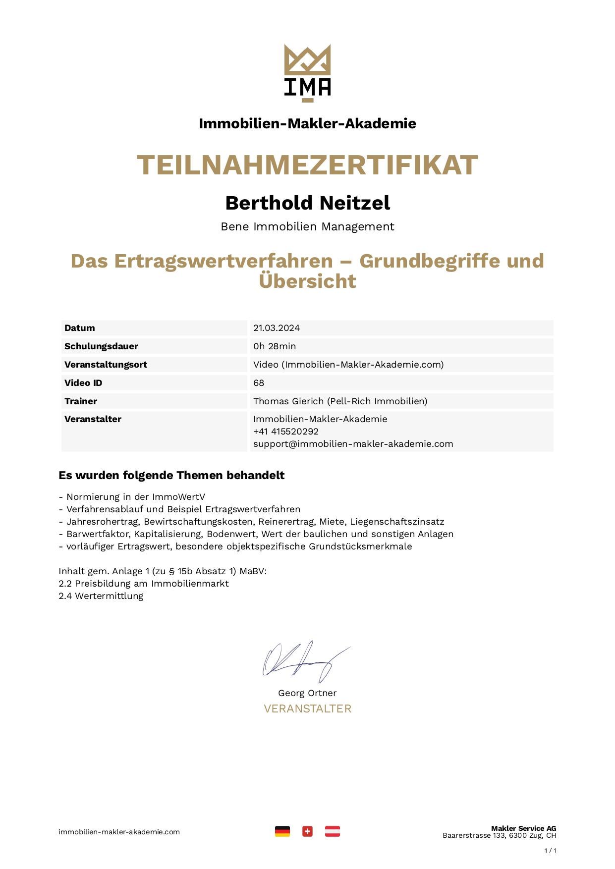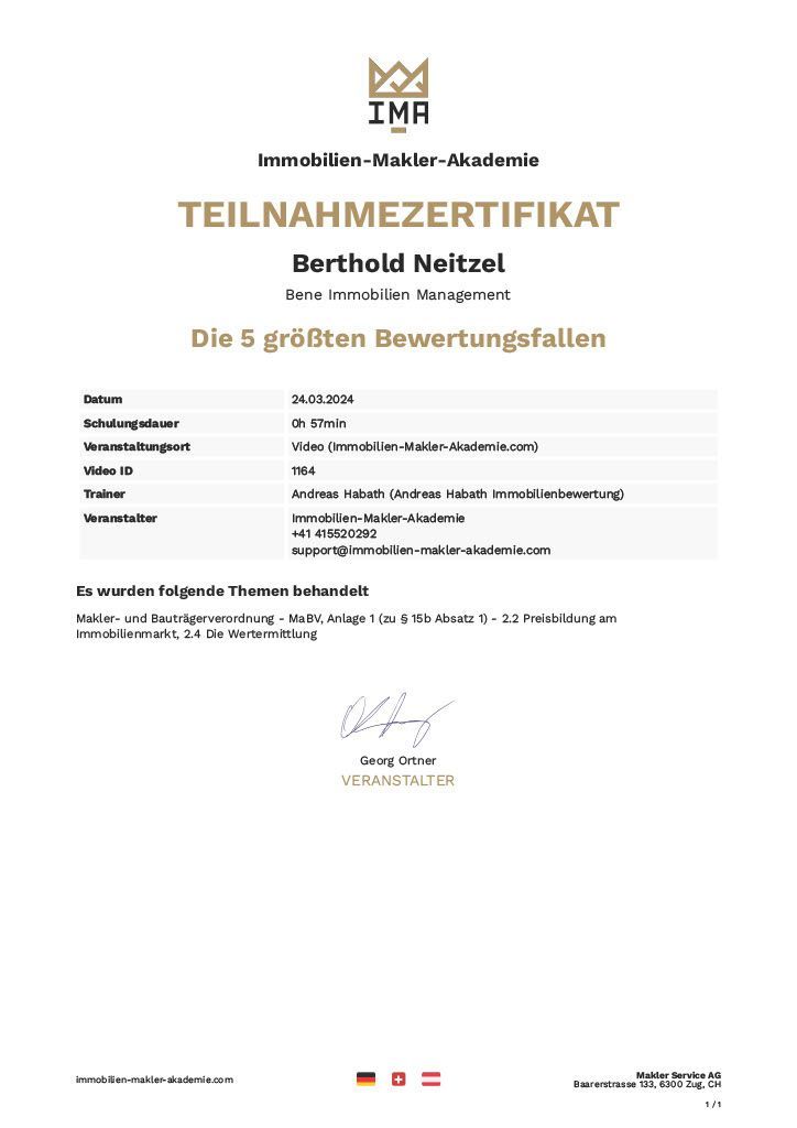 Wir bieten die Wertermittlung als separate Einzelleistung an, unabhängig von einem Maklerauftrag.